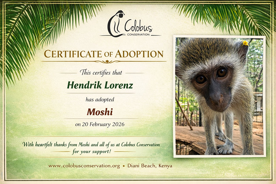 Viele finden sie schrecklich, haben sogar Angst vor ihnen oder fühlen sich von ihnen genervt: Colobusaffen, grüne Meerkatzen oder andere Kleinaffen. Ich finde sie sehr possierlich und mag sie, auch wenn sie die besten Diebe sind. Leider werden sie an der Küste Kenias oft Opfer von Straßenverkehr, Strommasten und anderen Dingen. Der Mensch hat auch in vielen Bereichen so stark eingegriffen, das der natürliche Lebensraum dieser Tiere in vielen Bereichen extrem eingeengt wurde. Zum Schutz der bedrohten Affen wurde 1997 am Diani Beach, nähe Galu, wurde 1997 das Colobus Conservation. Sie kümmern sich um verwaiste oder verletzte Tiere, bauen auch die berühmten „Colobridges“ (Seilbrücken über Straßen, über die Affen sicher von Baum zu Baum gelangen können und nicht von Autos oder andere Fahrzeuge überfahren werden). Da es für diese Organisation in einem 3. Weltland keine staatliche Unterstützung gibt, ist das Projekt vorwiegend auf Spenden angewiesen. Deshalb bietet das Colobus Conservation Tierliebhabern an, einen der sich in Pflege befindlichen Affen für kleines Geld zu adoptieren. Die Adaptionsgebühr für ein Jahr beträgt 30 €. Damit wird die medizinische Versorgung und auch das Futter finanziert. Bezahlt werden kann bequem mit Kreditkarte. Hier geht es zu der Adoptionsseite: Colobus Conservation adopt a Monkey!