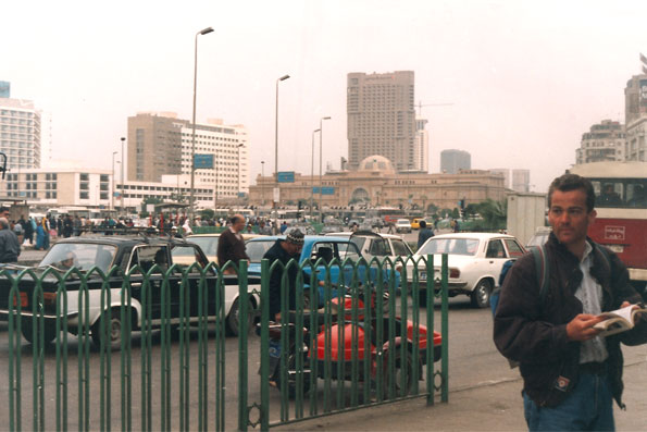 In den letzten Tagen fiel der Name Tahrir-Platz in Kairo ja sehr oft - und irgendwie kam mir der Name Tahrir-Platz auch bekannt vor. Ein Blick in die Fotokiste - tatsächlich, ich war schon einmal auf dem berühmten Tahrir-Platz. In dieser Zeit - wir schrieben das Jahr 1990 - sah der Tahrir-Platz noch ein wenig aufgeräumter aus. Wo heute Pflastersteine fliegen und Autos brennen, herrschte damals nur reger Verkehr und das übliche Chaos in der größten Stadt Afrikas. Unverkennbar auch: Ich hatte schon mal mehr Haare auf dem Kopf ;)