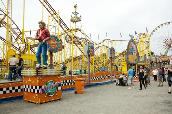 Nach 12 Jahren Abstinenz wurde es ja mal wieder Zeit, auf das alljährliche Dahlemer Highlight zu gehen. Verändert hat sich aber eigentlich nichts. Auch im 50. Durchgang ist das Deutsch-Amerikanisches Volksfest noch ein kleiner aber feiner Rummel, der von seiner Aufmachung her aber noch nicht an die hochmodernen Fahrgeschäfte der Neuzeit anknüpft. Hier ist die Achterbahn noch laut und rein mechanisch. Die Fahrten sind kurz, aber teuer. Achterbahn 4 Euro, Riesenrad 5 Euro. Kinder zahlen die Hälfte. Ein happiger Nachmittag für eine ganze Familie. Ansonsten erinnert nur wenig an Amerika - sieht man von dem Bühnenprogramm und den Hotdog oder Hamburger Ständen ab. Auch US-Amerikanisches Bier wurde ausgeschenkt. Allerdings gab es nur zwei Sorten zur Auswahl. Zumindest schmeckten diese besser, als das bekannte Budweiser, dass auch nach 25 Dosen noch nicht knallt. Wirkliche amerikanische Spezialitäten, wie angekündigt, gab es auf dem Deutsch-Amerikanisches Volksfest leider nicht.