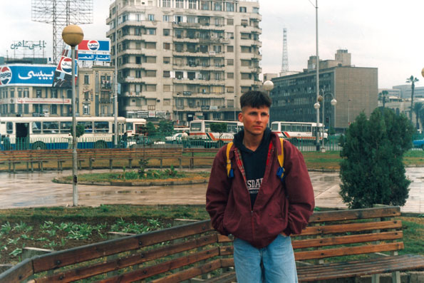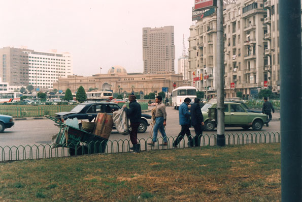 In den letzten Tagen fiel der Name Tahrir-Platz in Kairo ja sehr oft - und irgendwie kam mir der Name Tahrir-Platz auch bekannt vor. Ein Blick in die Fotokiste - tatsächlich, ich war schon einmal auf dem berühmten Tahrir-Platz. In dieser Zeit - wir schrieben das Jahr 1990 - sah der Tahrir-Platz noch ein wenig aufgeräumter aus. Wo heute Pflastersteine fliegen und Autos brennen, herrschte damals nur reger Verkehr und das übliche Chaos in der größten Stadt Afrikas. Unverkennbar auch: Ich hatte schon mal mehr Haare auf dem Kopf ;)