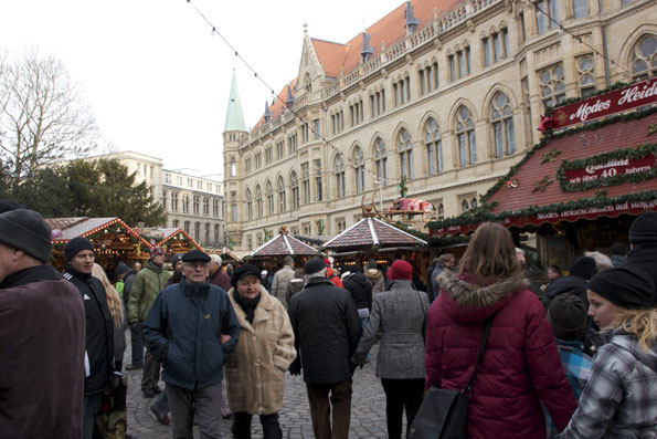 Jetzt ist es schon doch wieder einige Jahre her, dass ich den Braunschweiger Weihnachtsmarkt wieder besuchen konnte. Geändert hat sich nicht viel. Rund um den Dom und der Burg Dankwarderode ist trotz hoher Preise immer noch Geschiebe und Gedränge wie bei der Grünen Woche angesagt. Optisch hat sich der Braunschweiger Weihnachtsmarkt etwas vergrößert, ist jetzt doch der gesamte Rathausvorplatz von dem Markt mittlerweile okkupiert worden. Das war vor Jahren noch nicht der Fall. Die Stände sind teilweise sehr schön, streckenweise hat das Angebot aber nur wenig mit Weihnachten zu tun. Die solchen Stände immer wieder zugelassen werden ist relativ merkwürdig und zieht den Markt in das Ramschniveau. Etwas komisch: auf dem gesamten Markt war noch nicht einmal irgendwie irgendwo Weihnachtsmusik zu hören. Auch wenn jemanden diese Klänge schon aus den Ohren wieder heraus kommen, so sollten sie doch auf einem Weihnachtsmarkt nicht fehlen. Gut fand ich, dass es den Glühwein auch in Pappbechern zum Mitnehmen gab. Die Tassen (mit teilweise 2 Euro Pfandgebühren) immer wieder abgeben zu müssen, ist doch ziemlich lästig. Insgesamt hat sich der Besuch des Braunschweiger Weihnachtsmarkts gelohnt. Einmal reicht aber auch völlig für das gesamte Jahr. Wenn Gedränge und Anstehen zum Programm wird, ist es einfach nur noch nervig.