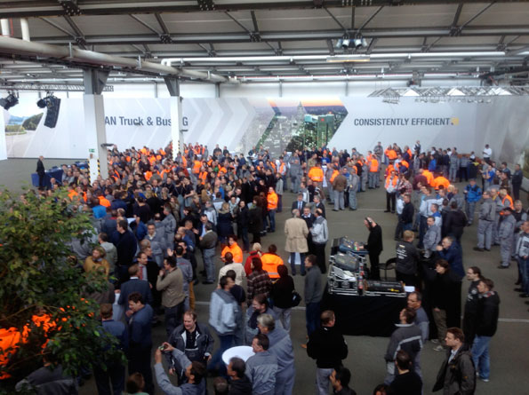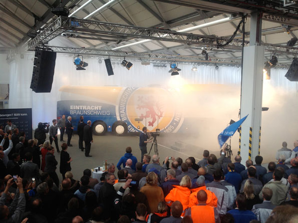 Nun ist auch Eintracht Braunschweig verkehrstechnisch in der 1. Bundesliga angekommen. Nicht nur sportlich hat sich der deutsche Meister von 1967 so langsam gefangen, auch zu den Auswärtsbegegnungen fährt jetzt das Team von Thorsten Lieberknecht etwas komfortabler. Mit der heutigen Übergabe des neuen Mannschaftsbusses im MAN Werk in Salzgitter vor den Toren der Löwenstadt, kann die Truppe etwas entspannter an ihre Arbeit gehen. Vor knapp 1500 Werksarbeitern wurde das neue Gefährt vorgestellt. Neben dem Coach waren auch Ademi, Elabdellaoui und Vrancic mit von der Partie und gaben den Arbeitern fleißig Autogramme. Ein schicker neuer Bus, möge er auch noch in der kommenden Saison nach Bremen, Hannover oder Dortmund fahren.