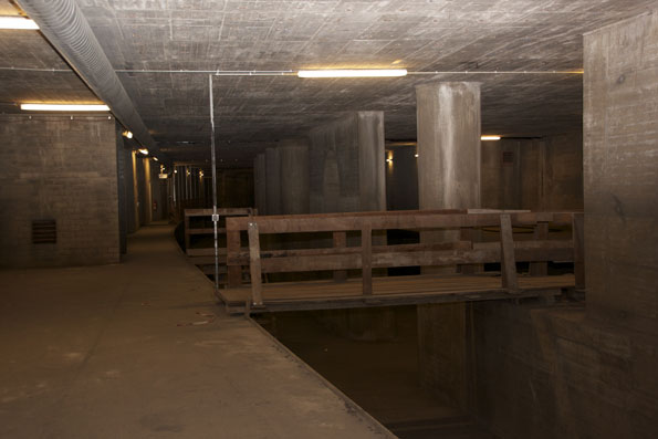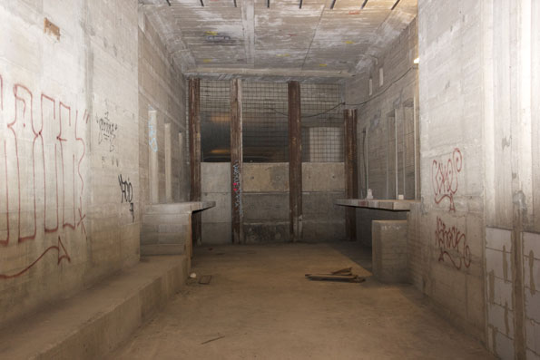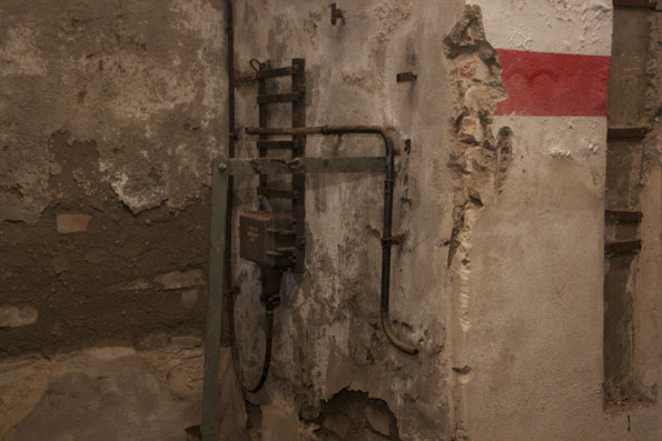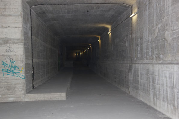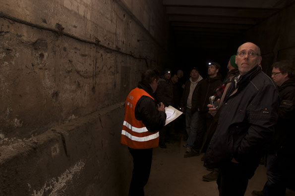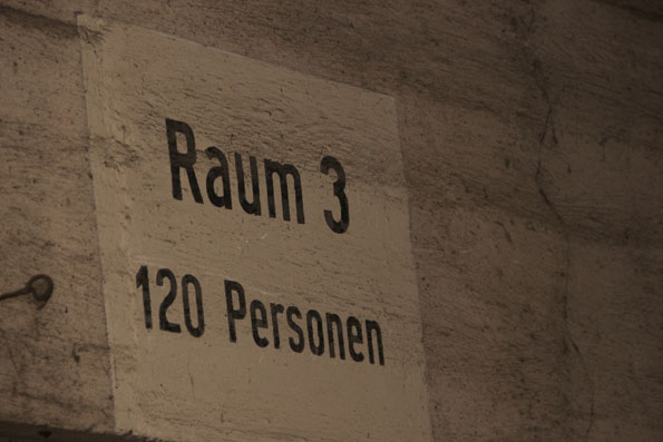Der eigentliche Höhepunkt des Tages war aber dann der 2007 wieder entdeckte Otzentunnel in der Nähe des Innsbrucker Platzes. In den 1920er Jahren befand sich auf dem heutigen Gelände der Waldenburg Oberschule eine Betriebswerkstatt in der Traegerstraße. Die Verbindungstunnel vom Innsbrucker Platz führten direkt dorthin. Einige Abschnitte wurden noch vor dem Zweiten Weltkrieg abgetrennt und zugeschüttet, da die Betriebswerkstatt nicht mehr benötigt wurde. Übriggeblieben ist aber der Otzentunnel, der im Zweiten Weltkrieg dann auch als Luftschutzbunker umfunktioniert wurde und im Laufe der Zeit einfach vergessen wurde. Erst das Einsteigen von Kindern in den Vorraum des Tunnels erregte wieder die Aufmerksamkeit über diese historische Stätte. Über eine Treppe geht es 15 Meter nach unten. Es ist dunkel und es riecht muffig und alt. Das Tageslicht reicht vom Eingang nicht aus. Richtung Norden verläuft der Tunnel bis zur Rubensstraße und endet an einer Mauer. Vorbeigeht es an Zeichen, die auf die Nutzung des Tunnels als Luftschutzkeller eindeutig hinweisen. An den Wänden noch Angaben auf die maximale Belegung an Personen. Auch sanitäre Einrichtungen sind noch zu finden – sowie ein zweiter Ausstieg. Eine sehr interessante und spannende Sache.