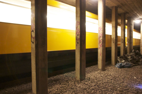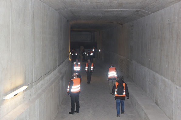 Treffpunkt am zweiten Tag des Seminars „Verkehrstechnik Berlin“ der Berliner Unterwelten e.V. war der U-Bahnhof Steglitz. Der Bahnhof unter eines der hässlichsten Gebäude Berlins, hat doch tatsächlich noch mehr zu bieten, als das, was der normale Fahrgast so vermutet oder sieht. Hinter einer unscheinbaren Tür geht es über einen kleinen Zwischenraum, der von der BVG genutzt wird, in den über den aktuellen in Betrieb befindlichen U-Bahnhof der U9, in den Rohbau der geplanten U10. Doch das ist nicht ganz richtig, denn die heutige U9 benutzt die Gleise der geplanten U10 – Grund dafür sind Bestimmungen, die dies zu Vorwendezeiten nicht anders möglich machten. Der Rohbau dümpelt vor sich hin und wird auch derzeit zu keinen anderen Zwecken (Siehe Rohbau Potsdamer Platz) benutzt. Sehr interessant, diese Bauvorleistung aus den 1970er Jahren einmal näher zu betrachten. Erstaunlich, dass in diesen gesicherten Bereich offensichtlich hin und wieder Sprayer eindringen konnten – das beweisen an einigen Stellen die farblichen Hinterlassenschaften. Weiter Richtung Norden geht es über still gelegte Gleise in den abgetrennten Teil des U-Bahnhofs Schlossstraße. Die U-Bahn saust an einem direkt vorbei – sehr beeindruckend. Ein ähnliches, nicht realisiertes Projekt war dann in der U-Bahnstation Innsbrucker Platz zu bewundern. Ein riesiger Rohbau unter dem verkehrsreichen Knotenpunkt, durch den auch die Stadtautobahn läuft. Auch dieses Bauvorhaben sollte einst der U10 dienen – diese Linie wird es wohl doch in meinem Leben nicht mehr geben. Weiter ging es zum U-Bahnhof Rathaus Schöneberg und Nollendorfplatz. Hier gab es noch viele Informationen zu den einzelnen Bahnhöfen und zur Verkehrstechnik der BVG allgemein.