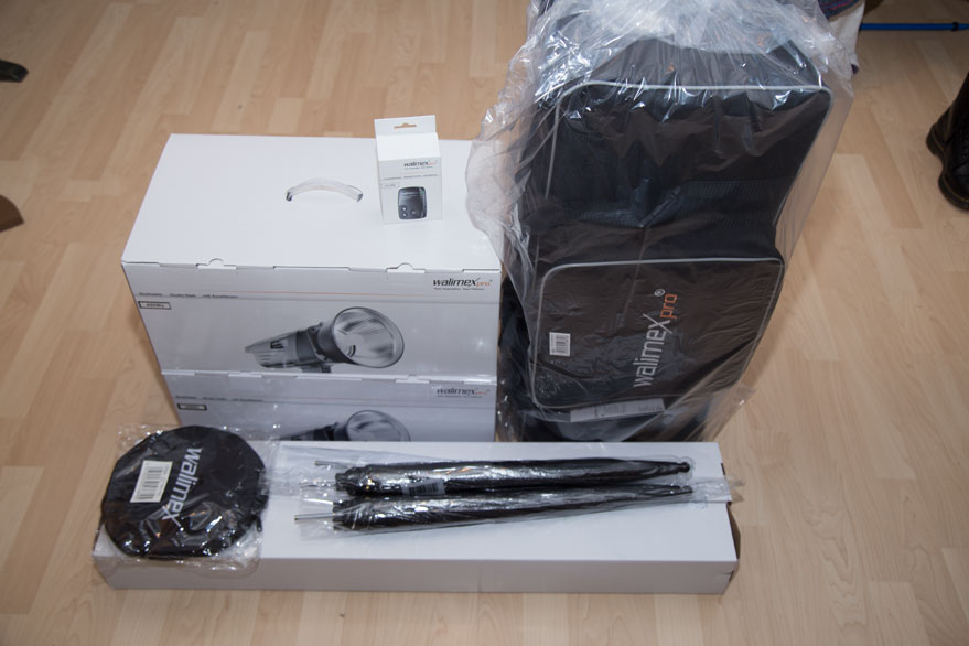 Das Walimex pro Studioset VE 4.2 Excellence wurde über Amazon schnell in einem überdimensionierten Karton geliefert. Das ganze System ließ sich schnell aufbauen. Doch schon am Anfang die erste Enttäuschung. Ein Stativ war am Fuß gebrochen und somit unbrauchbar. Ob es an der mangelnden Qualität lag oder ein Transportschaden war, konnte schwer festgestellt werden. Der Rest des Sets war aber soweit okay. Das Studioset umfasst eine 400 und eine 200 Studioblitzleuchte inkl. Empfänger und einen 16-Kanal-Funkauslöser. Dazu zwei Lampenstative mit 260 cm Höhe, 1 Studiotasche und drei Reflexschirmen. Eine Gebrauchsanleitung lag bei, wird aber eigentlich nicht benötigt. Allenfalls zur Einstellung der Funkverbindung war diese ganz hilfreich. Am besten den Funksender auf Werkseinstellung lassen und Kanal am Blitz auf 1 stellen, dann klappt das Auslösen des Blitzes relativ schnell. Der Funksender wird einfach auf dem Blitzschuh geschoben. Die Blitzstärke lässt sich auch am Funksender regulieren. Das spart den lästigen Weg zum Studioblitz. Die Stative sind am Fuß sehr schwergängig. Auch wenn die Schrauben voll gelöst sind, lassen sie sich die Füße nur schwer ausbreiten. Die ersten Ergebnisse mit den neuen Blitzen waren wirklich beeindruckend. Es macht wirklich Spaß, mit dem Licht zu experimentieren. Das defekte Stativ wurde übrigens umgehend ausgetauscht. Dazu erhielt ich leider die komplette Lieferung noch einmal. Kurios: Auch das nächste Stativ war nach dem Aufbau am Fuß sofort defekt. Da die ganze Lieferung noch einmal kam, hatte ich zum Glück auch dafür gleich Ersatz.