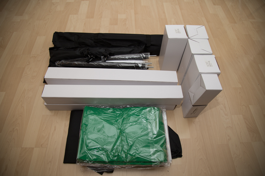 Das MVPOWER Profi Studio Set wurde relativ schnell geliefert, war unbeschädigt und vollständig. Viel erwartet hatte ich zuvor nicht. Meine Erwartungshaltung war letztendlich auch nicht unbegründet. Die Stative für die Beleuchtung gleichen denen von Notenständer. Allerdings tragen sie die Lampen ganz gut. Es bleibt trotzdem immer das Gefühl, dass sie gleich umfallen. Bei den Softboxen ist positiv hervorzuheben, dass diese sich bequem ausklappen lassen. Bei anderen Softboxen muss man sich stundenlang mit den Stangen herumärgern. Hier ist das nicht der Fall. Leuchtmittel und Schirme sind ebenfalls recht gut und erfüllen ihren Zweck: Licht. Das Hintergrundsystem ist wiederum leider totaler Schrott. Klapperig und nicht hoch genug ausziehbar. Ebenso das dazu gelieferte Hintergrundgewebe (schwarz, weiß und grün). Zu klein, zu dünn und mit zu vielen Faltmarken versehen. Das macht eine Menge Arbeit, diese wieder mit Photoshop oder Lightroom verschwinden zu lassen. Die mitgelieferte Tasche war so dünn, dass sie gleich beim ersten Mal schließen eingerissen ist.
