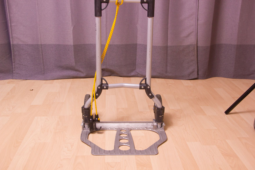Ist das Auto erst einmal verkauft, kommen schnell die ersten Transportprobleme. Getränkekisten, sperrige Pakete oder andere, sonst einfache Transporte via PKW, sind nicht mehr möglich. Ein platzsparendes Transportsystem könnte hier die Not zumindest lindern. Eine Hilfe versprach ich mir von der Wolfcraft TS 600, eine klappbare Handkarre für Lasten bis 70 kg. Für knapp 55 Euro kam diese Karre drei Tage nach der Bestellung zu mir nach Hause. Der erste Eindruck war gut, auch wenn sich das Gestänge nur schwergängig ausziehen ließ und die Arretierungshebel beim Einklappen nur mithilfe einer Verlängerung zu lösen sind. Auch die Schaufel ließ sich nur mit viel Mühe ausklappen und einrasten. Insgesamt also erst mal nichts für Menschen mit wenig Kraft. Überraschend waren aber die ersten Transporte schwerer Lasten. Durch die hochwertigen und gut gummierten Räder läuft die Handkarre extrem ruhig. Dadurch lassen sich hohe Gewichte sehr einfach ziehen. Anders ist das aber bei leichten Gewichten. Wenn das Transportgut nicht genug Gewicht hat, ziehen sich beim Transport nach einiger Zeit die Räder nach innen. Man muss also ständig anhalten, um die Räder wieder in die Transportposition zu stellen. Über eine länger Transportstrecke kann das ziemlich nervig werden. Auch sind die mitgelieferten Gummibänder eigentlich viel zu kurz.