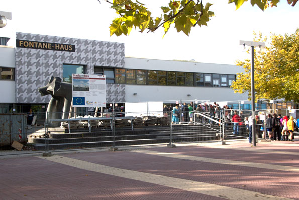 In der Schlange stehen im Märkischen Viertel – so hieß es am heutigen Tag zur Eröffnung der Manga und Anime-Convention 2013. Das Fontanehaus platzte aus allen Nähten. Für echte Manga und Anime Fans ist diese Veranstaltung sicherlich ein Muss. Auf der Zeichner Allee präsentieren sich die besten Künstler aus Deutschland und Österreich. Darüber hinaus gab es noch ein fettes Rahmenprogramm mit Workshops, Rollenspiele und Autogrammstunden bekannter Comic-Zeichner. Typisch Japanisches darf natürlich auch nicht fehlen: Bondage und Karaoke gehörten ebenso zur Veranstaltung. Das gesamte Event endet am Sonntag, dem 06.10.2013. Karten für einen Tag sind für 20 Euro zu haben.